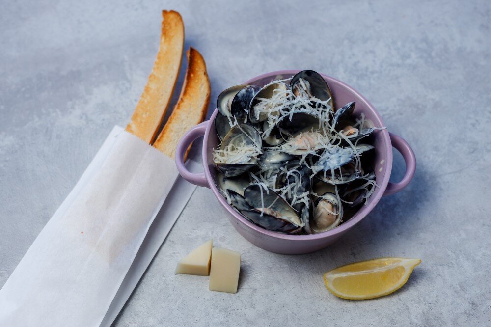 Мидии в сливочно-чесночном соусе
