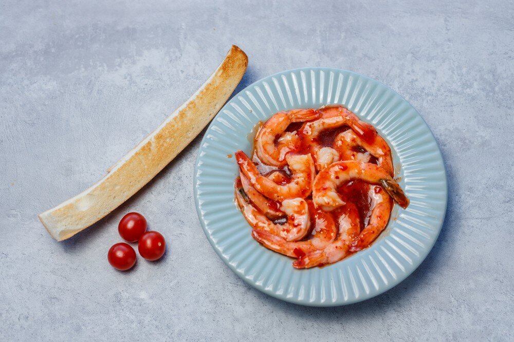 Нежное мясо креветок буквально тает во рту. Оно гармонично сочетается с пикантным соусом, в котором чувствуется сладость и лёгкая острота.