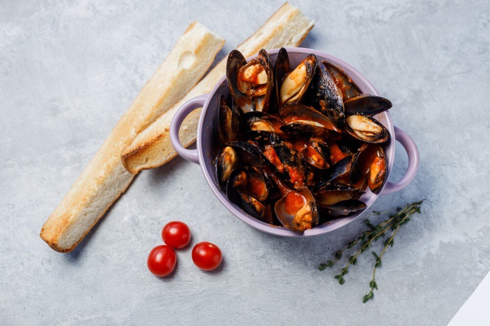 Мидии в томатном соусе